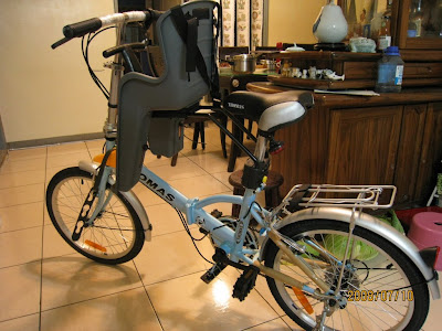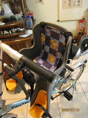現在總算發現一個可以輕鬆玩的好玩意兒了--腳踏車+兒童座椅